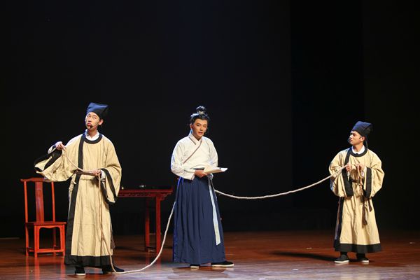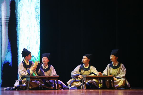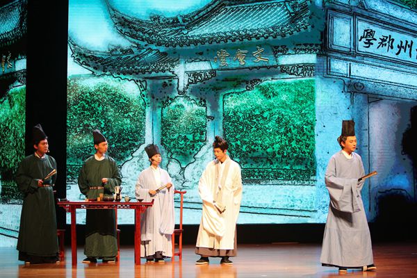 《君子胡瑗》讲述了胡瑗先生的求学、教学经历,展现了谦谦君子的修成之路。整场话剧共分为四幕,以说书人的念白引出胡瑗先生一生的四个重要阶段,生动讲述了先生刻苦求学的经历,描绘了先生与文会堂五贤吟诗作赋、谈古论今的情景,再现了先生在湖州实行分斋教学法,开创明体达用的教学思想以及师生共融的场景。