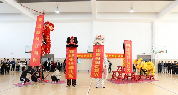 学校龙狮队进行了精彩的舞狮表演,热烈欢迎奥运冠军一行。体育学院负责人代表现场师生致欢迎词。奥运冠军及嘉宾们向学生代表赠送了冬奥会吉祥物冰墩墩,并与同学们亲切交流、合影留念。