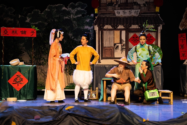 《大运河上的新鲜事》将打击乐融入到剧情当中,配合精彩绝伦的歌舞表演、美轮美奂的灯光转换和演员们的生动演绎,给现场观众带来一场视听盛宴。该剧主要讲述了在京杭大运河湖州段含山脚下勤劳的村民们——含山爷爷、蚕小宝、丝绸姐姐、桑树哥哥等与运河里的垃圾怪抗争,并通过智慧和团结共同守卫绿色家园的故事。“桑基鱼塘”“湖笔文化”“‘两山’理念”经过儿童剧中活灵活现的精心演绎,更加引起观众们的共鸣。这是湖州文化和儿童剧表现形式的一次深度融合和跨界探索,兼具趣味性和教育性,充分激发了孩子们保护环境、团结一致的意识和决心。