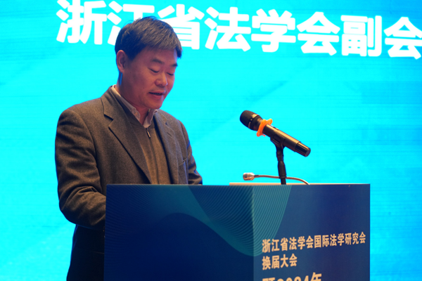 浙江省法学会副会长、浙江大学光华法学院院长胡铭在致辞中表示,浙江省法学会国际法学研究会致力于加强涉外法治建设,要维护以国际法为基础的国际秩序,推动国际关系法治化。其围绕“构建人类命运共同体与全球治理:国际法的作用”学术年会主题,提出要始终坚持党对国际法工作的有力领导,深入学习贯彻习近平法治思想、习近平外交思想,继续加强理论创新,为国际法的发展提供更多中国方案,同时也要注重国际法学学术研究成果的运用,服务新时代中国特色大国外交,积极为推进中国式现代化贡献法治力量。