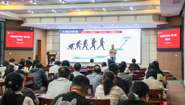 会上,张文宇从AI新趋势、何以鹤立“机”群和“AI+”学术方法论三个方面生动讲解了在AI时代,如何当好研究生导师。他指出,AI时代无法被取代的是“百分之一的灵感”;他认为,高水平的研究生导师要学会如何指导研究生“吃喝玩乐”:吃的是学术盛宴、喝的是知识琼浆,玩的是人机融合、乐的是成为更好的自己;他建议,新时代研究生人才培养模式应该以“AI与人本双驱动的跨学科协同创新”为目标,人人成为“AI+”生态贡献者。